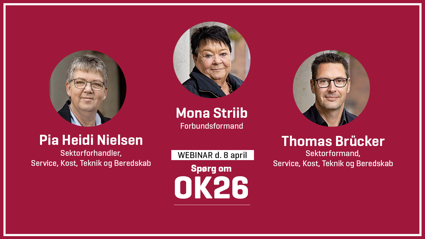 Få overblik over den nye overenskomst for Service, Kost, Teknik og Beredskab Tid: 08-04-2026 18:30 til 20:00 Sted: Zoom - Online