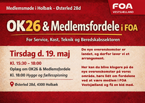 Vi starter ud med en gennemgang af de nye overenskomster på vores områder. Herefter er der en gennemgang af nogle af de gode medlemsfordele man kan gøre brug af når man er medlem af FOA Vestsjælland.