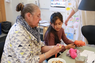 Jeanette Bach Madsen, hendes faste makker gennem de seneste fem år, nikker: “Vi hjælper børnene i gang med en aktivitet med det samme. Det skaber ro og fokus.