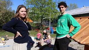 Julie og Emil er med deres niece i vuggestue på Bedste-Ven-Dagen. "Det er et superhyggeligt koncept," synes de.
