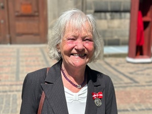 Solen strålede om kap med medaljen, da hjemmehjælper Susanne Hjorthøj var i kongelig audiens efter 40 år i Ballerup Hjemmepleje.