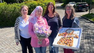 Soussan Youssef Rahal er et af de 100 udvalgte talenter. På billedet ses FOA SOSUs fællestillidsrepræsentant Pernille Wiig Voss, Soussan, daglig leder Vivian Eriksen, som har nomineret Soussan til prisen, samt fællestillidsrepræsentant-suppleant Christina Frederiksen.