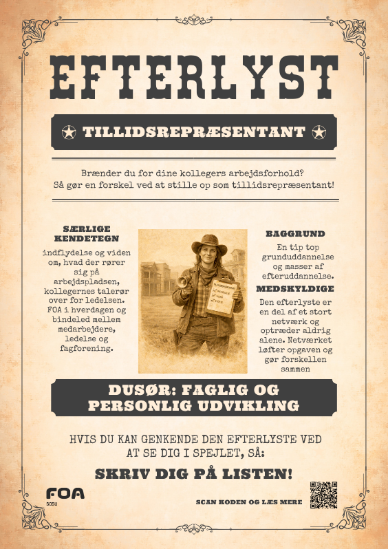 I alle FOA SOSUs kommuner og på hospitalerne er der fællestillidsrepræsentanter, der varetager medlemmernes interesser. Men når der ikke er en tillidsrepræsentant på den enkelte arbejdsplads, mangler den vigtige stemme i hverdagen, der kan styrke det lokale fællesskab, trivsel og indflydelse.