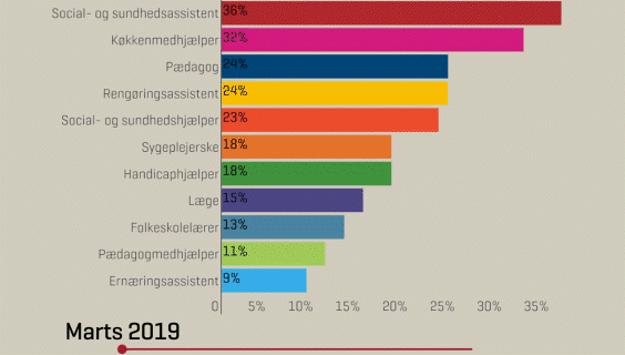 I grafikken nedenfor kan du se de velfærdsfag, det er sværest at rekruttere medarbejdere til.