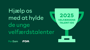 Den 20. maj fejrer FOA og Pensionsselskabet velfærdens talenter ved en stor prisoverrækkelse på Christiansborg: Velfærdens talent 100. Prisen hylder 100 unge under 36 år, som arbejder inden for FOAs faggrupper og udmærker sig ved deres engagement og indsats