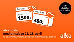 Og fra d. 22. – 28. april holder Alka Medlemsdage, som betyder, at får du online rabat i form af attraktive gavekort til shopping, når du køber dine forsikringer på alka.dk.