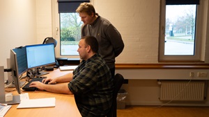 Da medlemmerne ikke ville komme til fagforeningen, måtte fagforeningen komme til dem, tænkte sektorformand Jørn Thor Nielsen, før han sammen med projektleder Marc Oliver Holmstykke (th) designede den løsning, der nemt og enkelt gjorde det muligt at kontakte 170 medlemmer for at spørge om deres ønsker til OK26. Foto: Privat