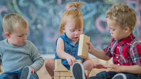 Se filmen fra Vibeke Clausens dagpleje, hvor to små børn på ca. 1,5 år selv dækker bord, mens Vibeke er på badeværelset med de store børn.