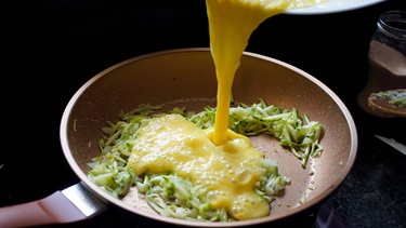 Revet hvidløg kan evt. tilsættes æggene når de piskes sammen.