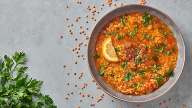 "Linssoppa med kokt potatis og ostmörgås"